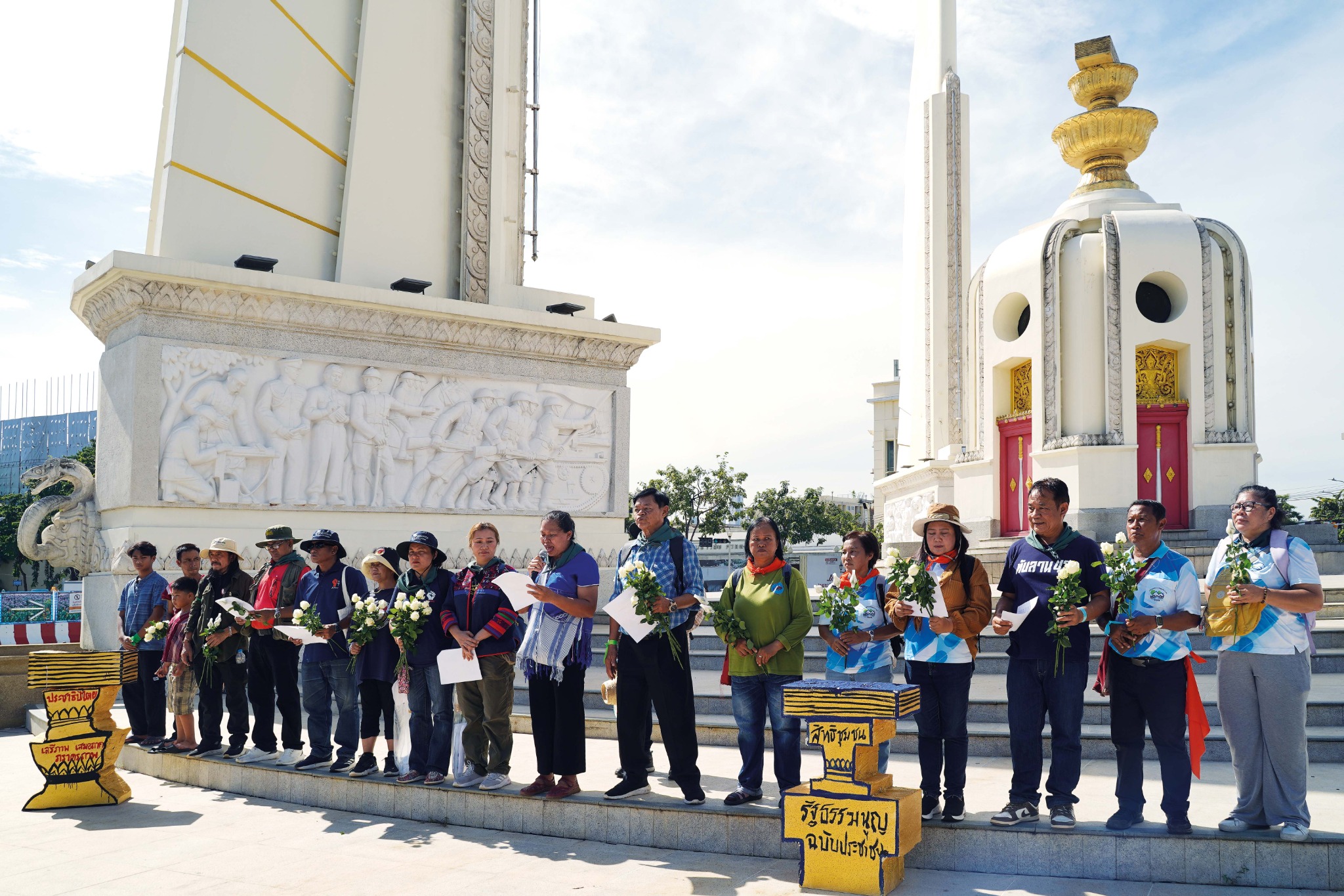 เคลื่อนขบวนมายังอนุสาวรีย์ประชาธิปไตย หนึ่งในประเด็นเรียกร้องใหญ่คือแก้ไขรัฐธรรมนูญ เพิ่มสิทธิที่อยู่อาศัยเป็นสิทธิขั้นพื้นฐานของทุกคน