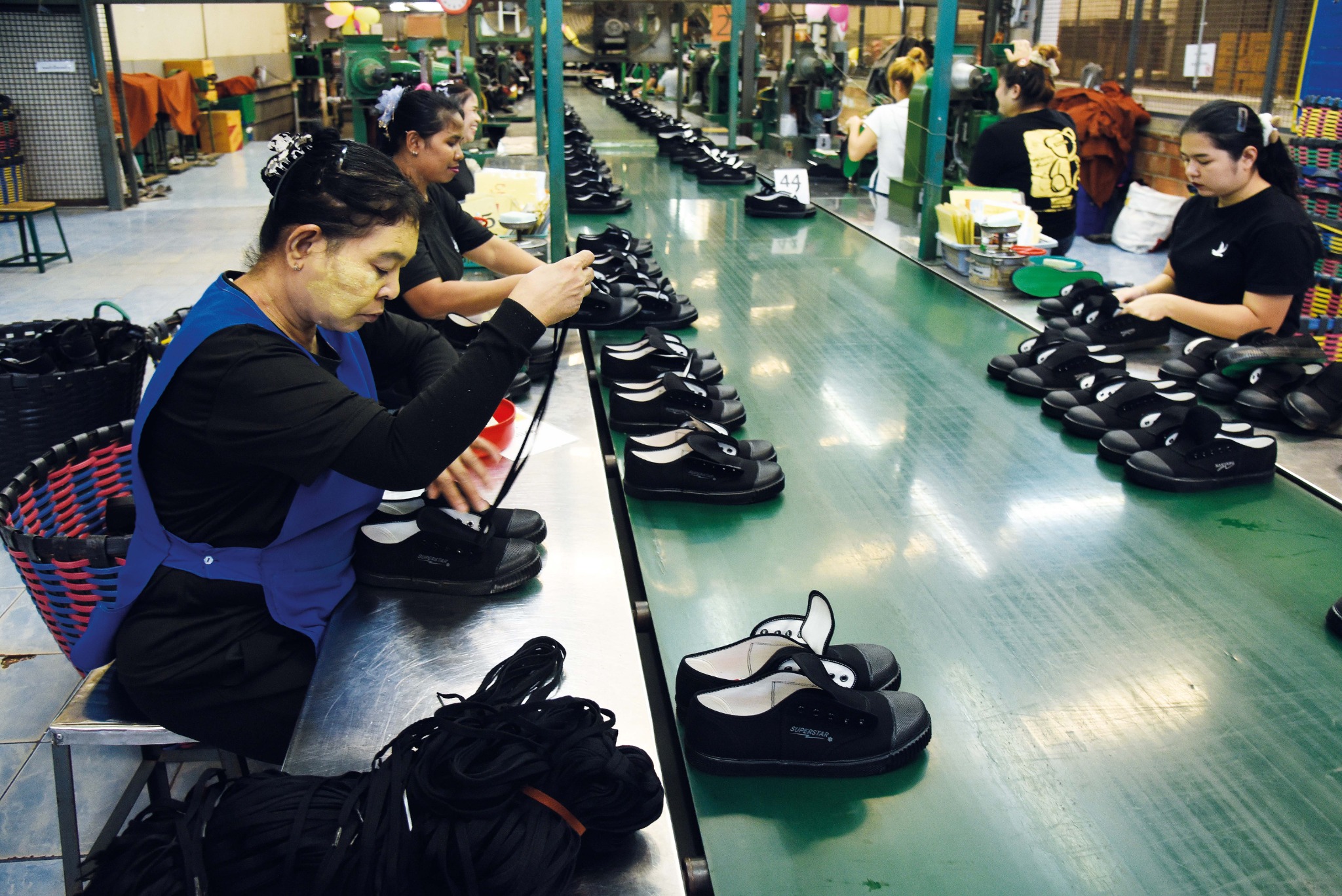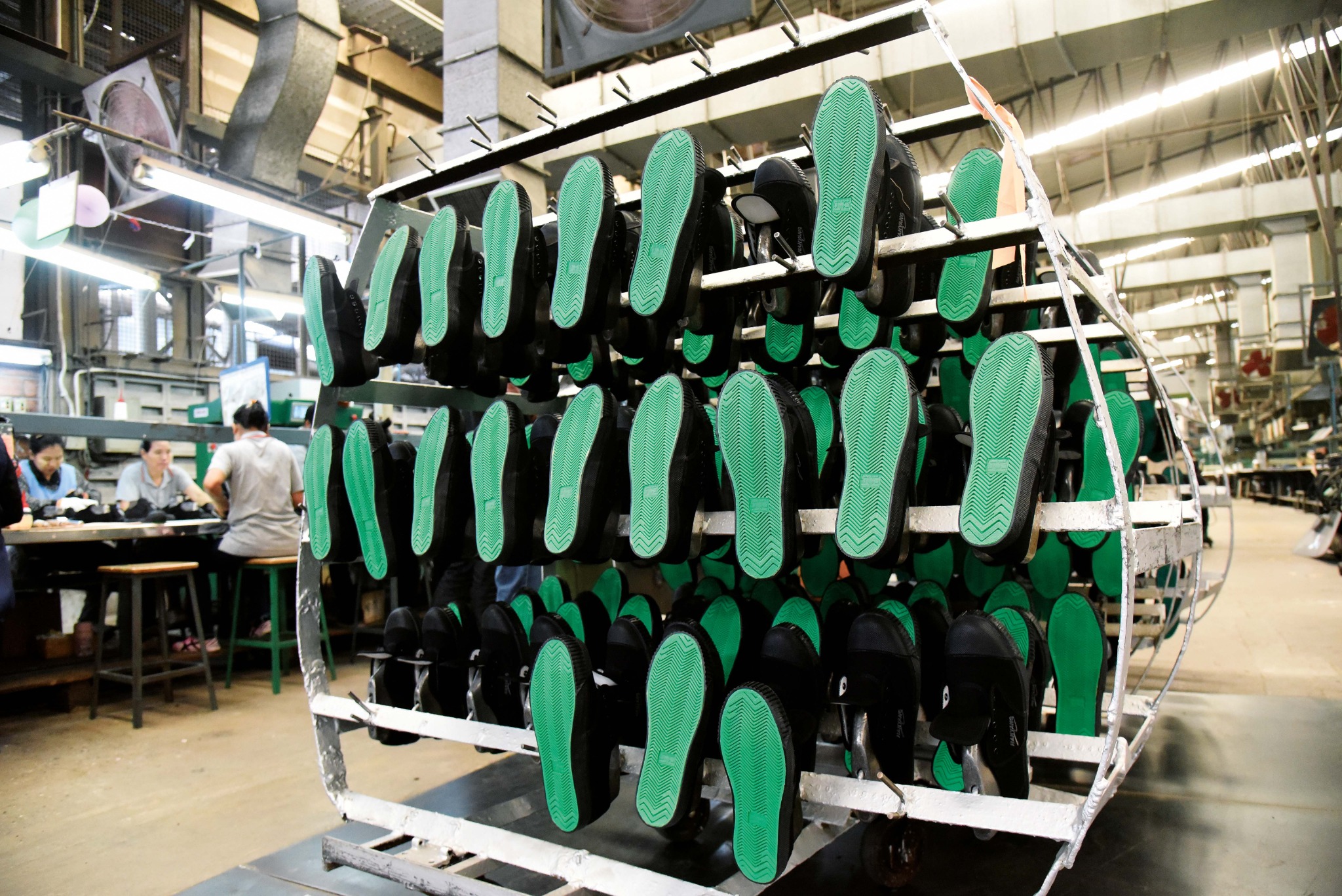 ภายในอาคารผลิตรองเท้าผ้าใบนันยาง ซึ่งทำงานมาตั้งแต่ปี ๒๕๑๒ ปัจจุบันมีรองเท้าหลายร้อยล้านคู่ส่งออกถึงผู้ใช้