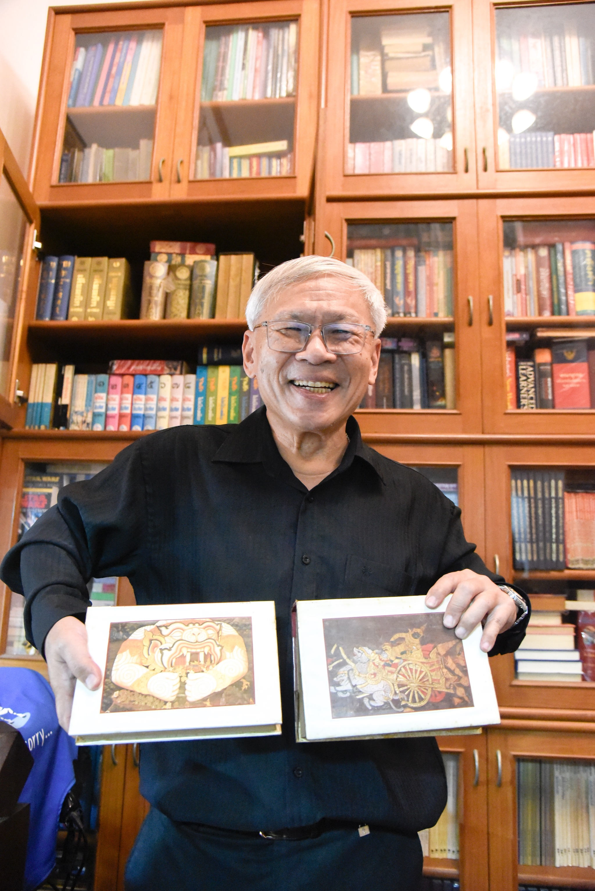 จากโซนหนังสือการ์ตูนคุณหมอเดินไปเปิดตู้วรรณคดีฉบับเก่าเก็บอายุร่วม ๖๐ ปี ซึ่งไม่ค่อยมีใครได้เข้ามาถึงส่วนนี้ของบ้าน หยิบบางเล่มมาเปิดให้ดูหน้าเครดิต